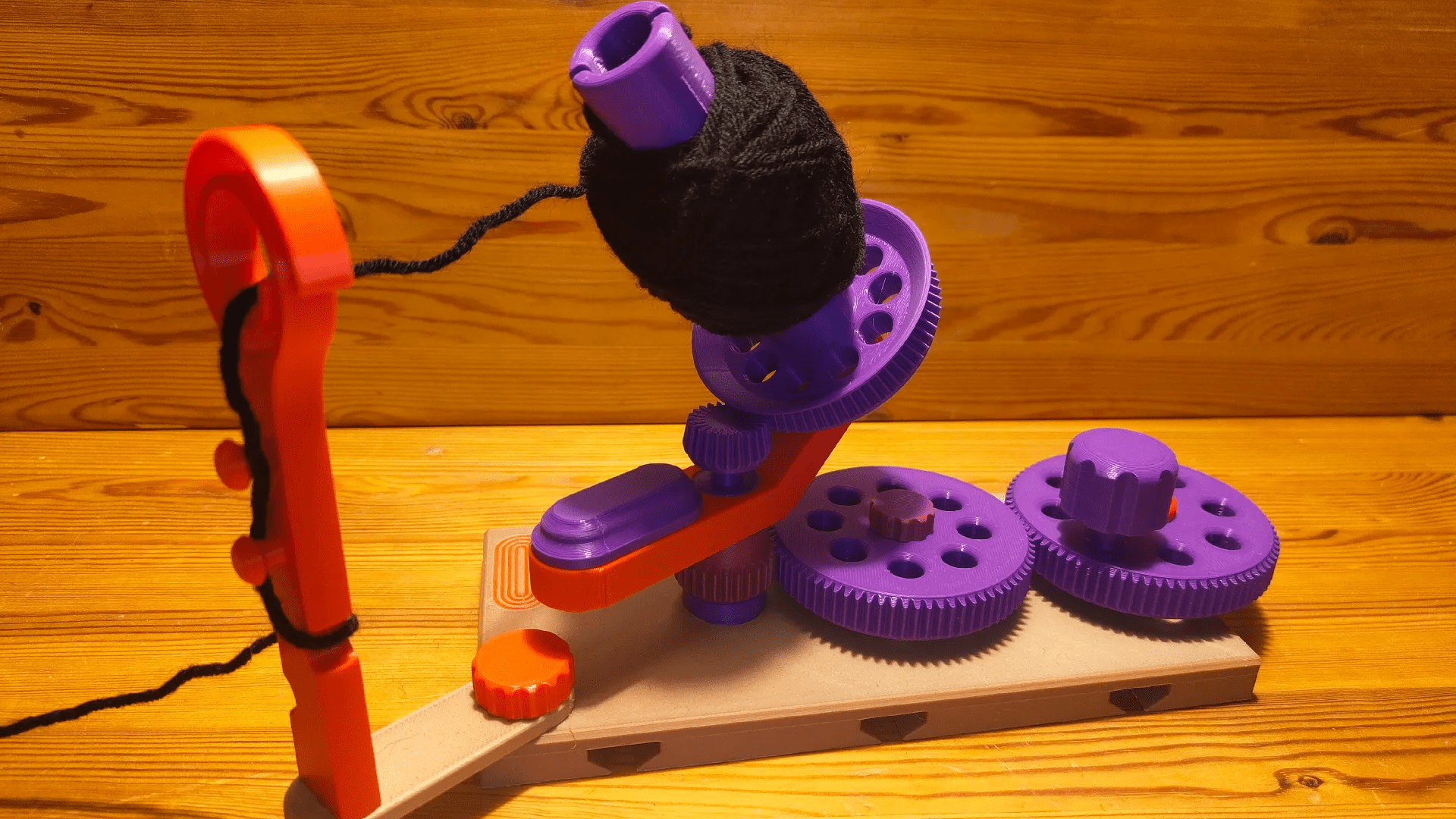 It is a easy, manually cranked yarn winder that you may make utilizing any 3D printer. Despite the fact that it isn’t motorized, it is extremely fast. That’s as a result of it has a gear system to show the sluggish crank motion into quick spool rotation. That spool is canted relative to the axis of its rotation, so the yarn winds neatly.