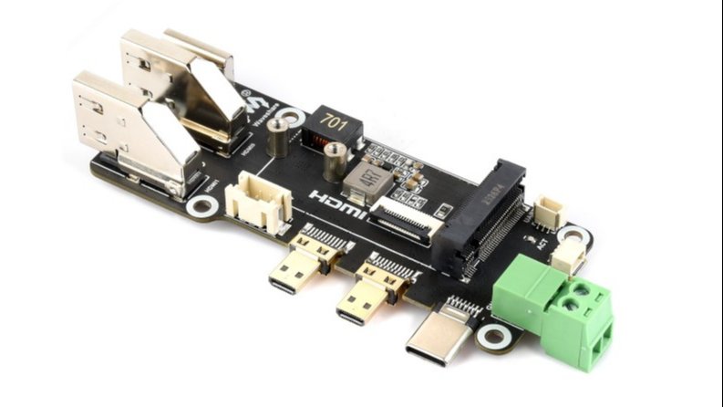 The board sits alongside the Pi, linked to its micro HDMI and USB-C ports. The 16-pin PCIe port can also be linked to the board by way of a flat ribbon cable. Energy may be provided both by way of USB-C, or by way of screw terminals.