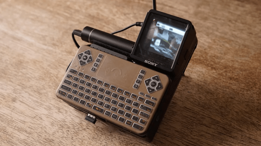 The devices do not must be fed a broadcast TV sign, although: in Granitsky’s construct the video and audio feed comes from a Raspberry Pi 3 Mannequin B+ — made, pleasingly, in a contemporary Sony manufacturing unit — mounted subsequent to the Sony Watchman itself. Each are hidden underneath a custom-painted keyboard, gamepad, and touchpad combo serving because the machine’s enter, whereas a lipstick-style USB battery mounted on the high supplies energy to the Raspberry Pi — the Watchman operating from AA batteries.