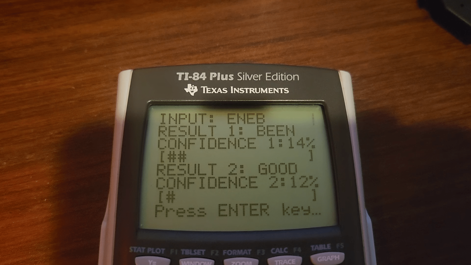 By constraining the issue on this means, a small however efficient neural community could possibly be designed. It accommodates simply 4 enter neurons, 60 hidden neurons, and 12 output neurons (one for every doable goal phrase). However even this took some work to encode every little thing sufficiently to make it match throughout the TI-84’s meager reminiscence capability. These optimizations had been adequate for inferences, however coaching nonetheless needed to be carried out on a separate pc — ExploratoryStudios calculated that it could have taken years to coach the mannequin on the calculator (if reminiscence overflow points could possibly be solved, that’s).