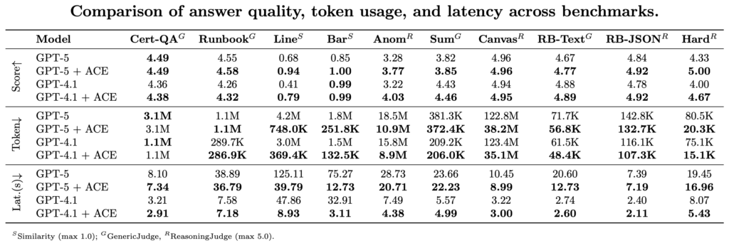 Observations: In depth testing throughout a variety of benchmarks demonstrates that ACE reduces token utilization by 20–90% relying on the duty, whereas sustaining and in lots of instances enhancing reply accuracy. In apply, this successfully delivers an “limitless” context window for prompts involving machine knowledge.