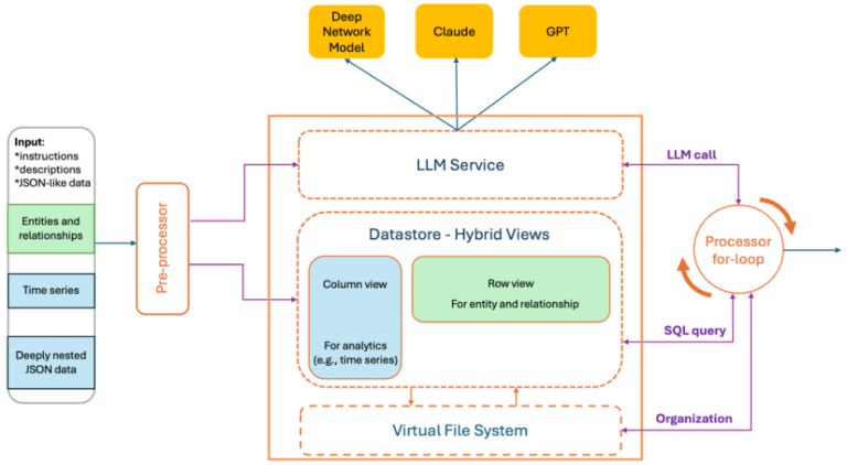 - A preprocessor parses the consumer immediate—comprising pure language and embedded JSON/AST blobs as a single string—and produces hybrid knowledge views together with non-obligatory language summaries (e.g., statistics or anomaly traces), all inside a specified token finances.