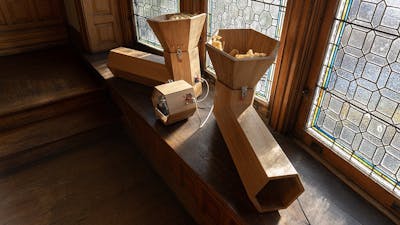 “The Translation Machine” is a reactive sound artwork set up constructed for an upcoming exhibition on the Dunn Museum in Illinois. If no person is round to understand it, the sculpture merely sits inactive. But when an individual approaches, the sculpture beings taking part in fascinating sounds. As that particular person will get nearer, the quantity will increase. Gill recorded these sounds himself whereas touring the world, utilizing binaural microphones to reap “3D” audio.