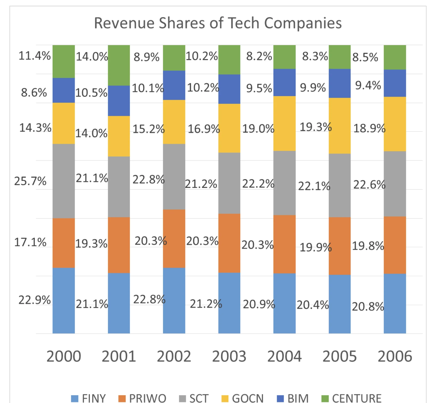 Immediate: “Chart characterize the income share of the completely different firms within the tech sector in Cuckooland. Analyse the Graph and reply the next: