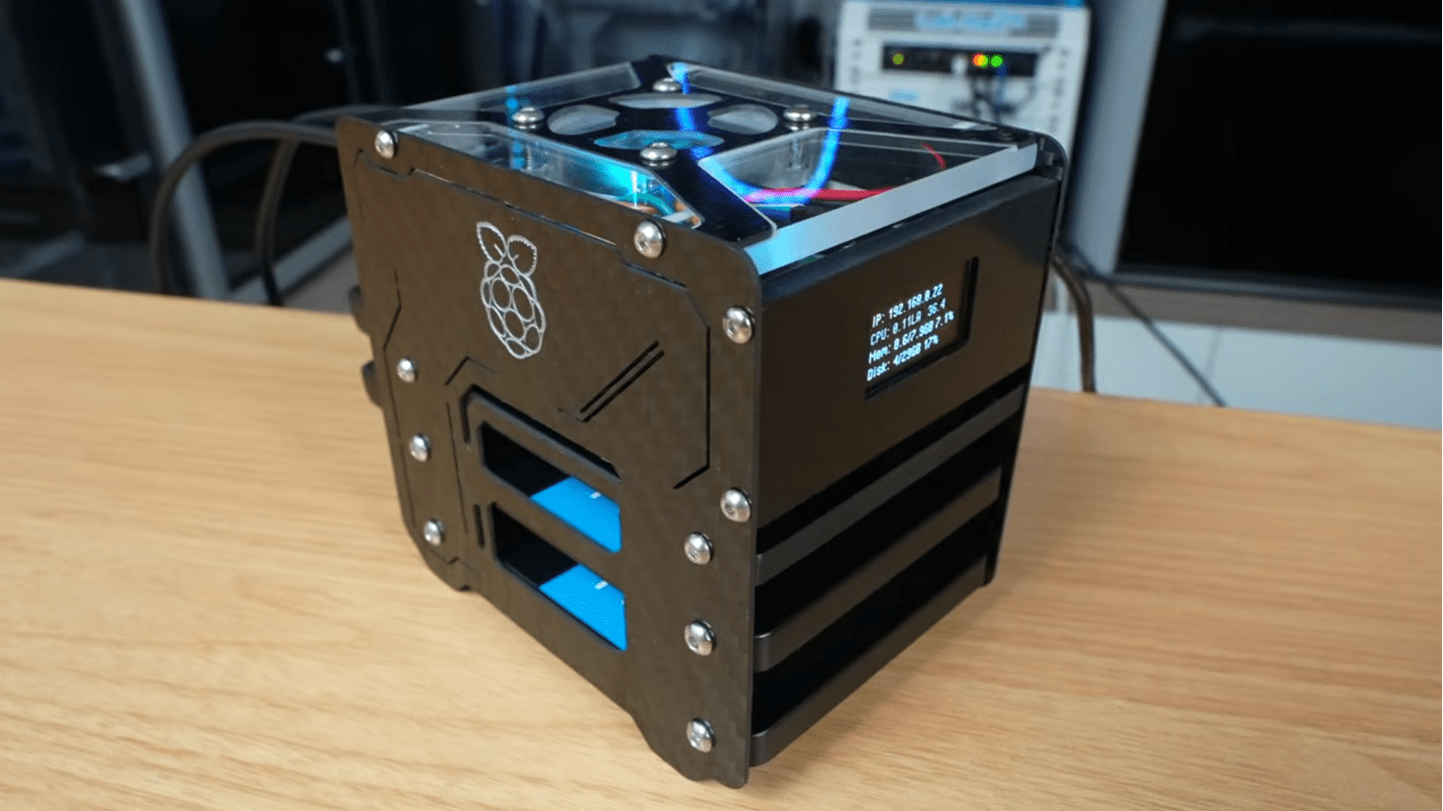 To maintain issues as user-friendly as attainable, Klements selected to construct his network-attached storage (NAS) system round a Raspberry Pi 5. These little computer systems don’t have plenty of choices for interfacing with exterior drives, however by utilizing an NVMe HAT that connects to the PCIe port and helps two drives, together with a USB to SATA adapter that helps two extra drives, Klements was capable of pack in sufficient storage for most individuals’s private wants.