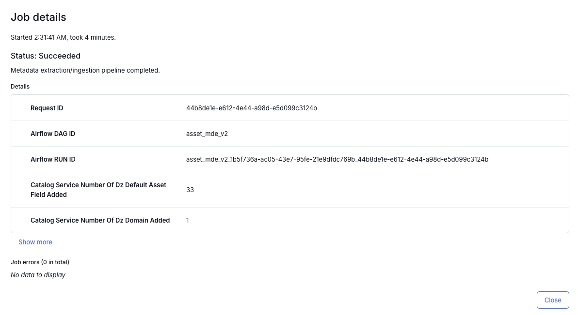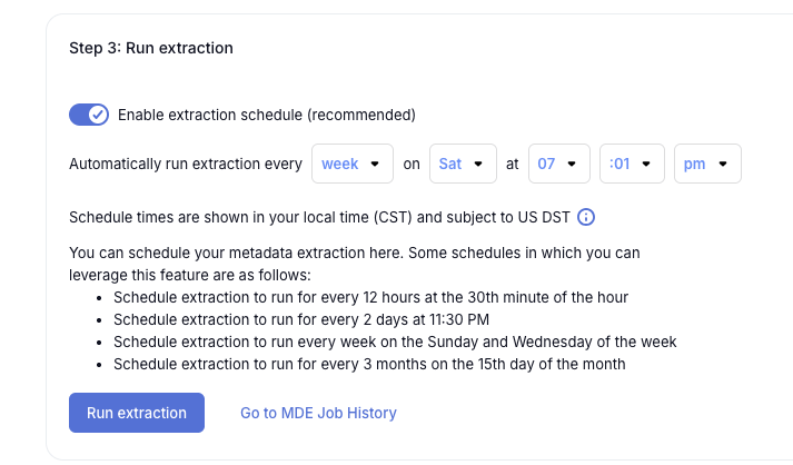 You possibly can run metadata extractions on demand or schedule them to run mechanically. The system performs an preliminary bulk extraction of your chosen domains and tasks, then retains it up-to-date by way of incremental updates utilizing both event-driven triggers or scheduled polling. Communication makes use of encrypted APIs with scoped IAM permissions following least-privilege rules.