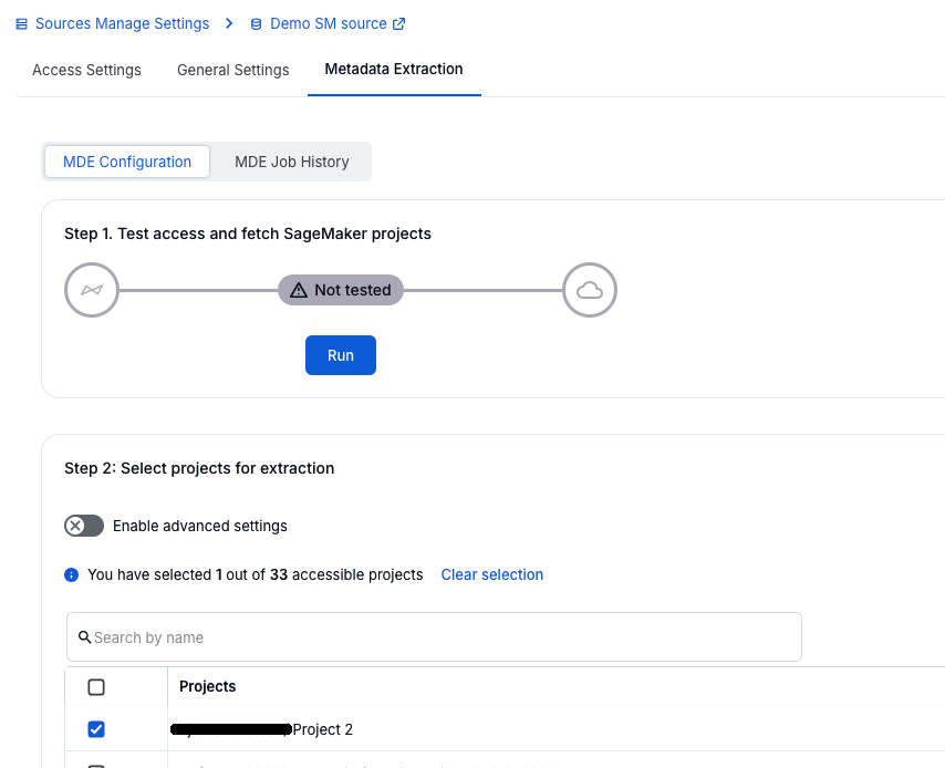 Configure the extraction scope by choosing the SageMaker domains and tasks to synchronize, as proven within the following screenshot. Solely tasks the place the IAM position or person is a member might be obtainable for synchronization.
