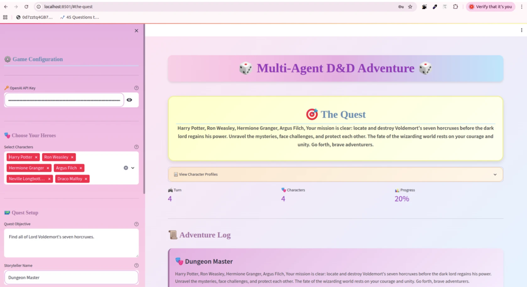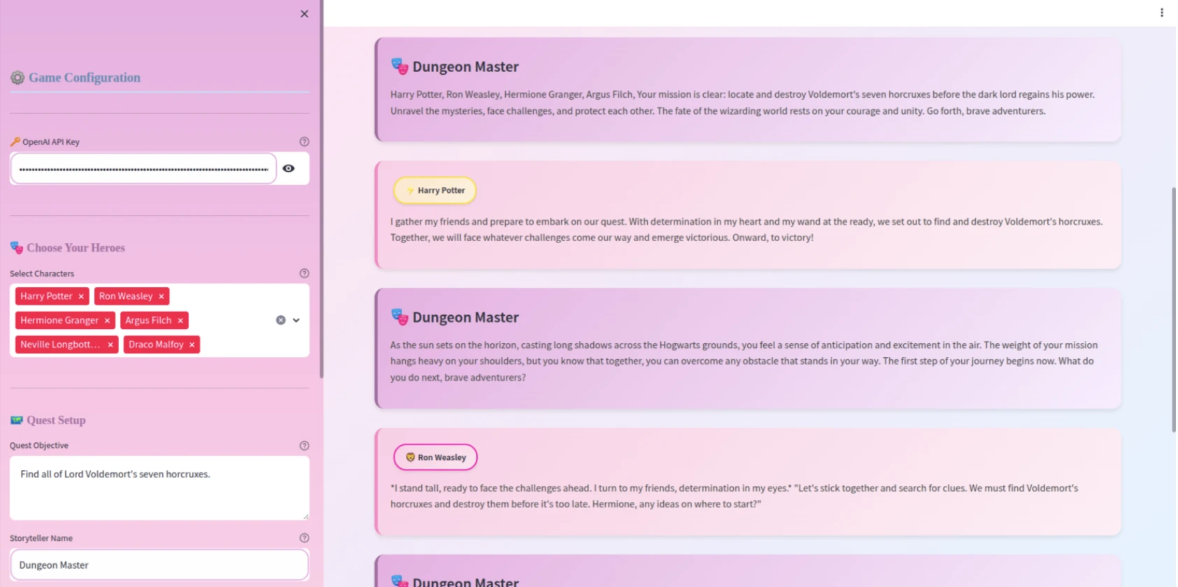 Because the dependencies are put in, now, you might be all set to carry the multi-agent D&D recreation to life! You can begin the Streamlit app utilizing the command beneath: