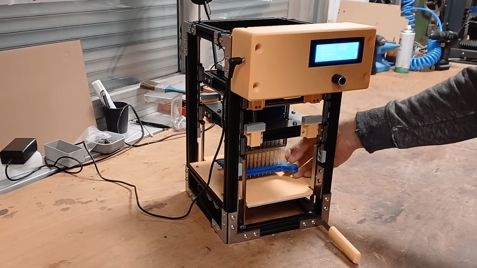 That is an open supply challenge, however it isn’t but absolutely documented and Triggy doesn’t present any particulars within the video in regards to the digital {hardware}. Nevertheless, the machine seems to make use of an Arduino UNO Rev3 board and a CNC defend to regulate the steppers. The consumer can set parameters and activate the capabilities utilizing a easy management knob paired with an LCD display.