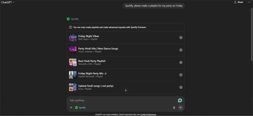 You may then hearken to it, swap out songs, and share it, all with out leaving ChatGPT.