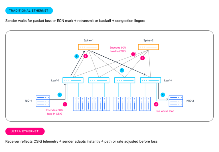 To deal with these challenges, the Extremely Ethernet Consortium (UEC) was shaped in 2023, spearheading a brand new, high-performance Ethernet stack designed for these demanding environments. At its core is a scalable congestion management mannequin optimized for microsecond-level latency and the advanced, high-volume visitors of AI and HPC. As a UEC steering member, Cisco performs a pivotal position in shaping the foundational applied sciences driving next-generation Ethernet.