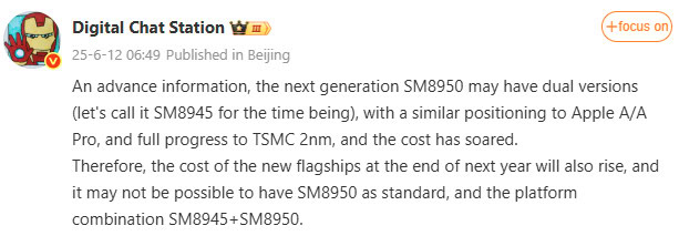 Digital Chat Station on Weibo studies that the Qualcomm SM8950 chipset, anticipated to be the Snapdragon 8 Elite Gen 3, is perhaps accessible in “twin variations.” The leaker tentatively calls the much less succesful chip the SM8945 and likens this association to Apple’s A and A Professional chips utilized in its iPhones.
