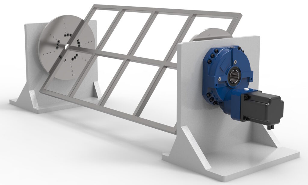 Utilizing a excessive ratio, precision gearbox, comparable to GAM’s GPL robotic planetary, brings the inertia ratio nearer to 1:1, permitting a smaller motor to exactly management the big, heavy load of a trunnion, for instance, generally used as robotic weld positioners in automotive functions. (Picture: GAM.)