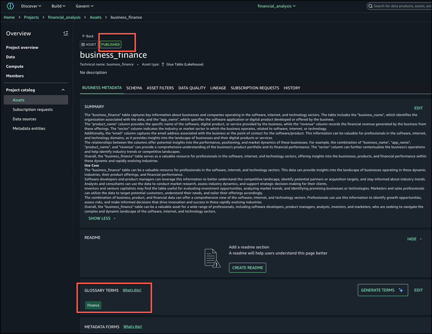 • Analysts can now filter the catalog to search out solely Finance datasets or be part of belongings persistently tagged with the identical glossary time period