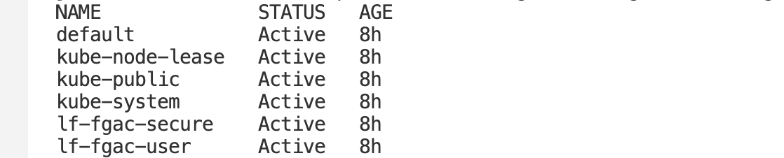 You may confirm the namespaces with the next command:kubectl get namespaceThe next screenshot exhibits an instance of the anticipated output.