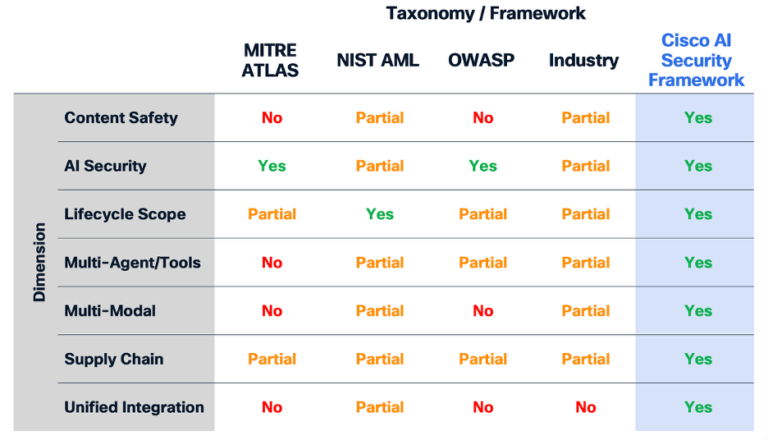 What has been lacking is a cohesive mannequin—one which seamlessly spans security and safety, runtime and provide chain, mannequin conduct and system conduct, enter manipulation and dangerous outputs. Cisco’s evaluation makes the hole clear: no present framework covers content material harms, agentic dangers, provide chain threats, multimodal vulnerabilities, and lifecycle-level publicity with the completeness wanted for enterprise-grade deployment. The actual world doesn’t section these domains, and adversaries actually don’t both.