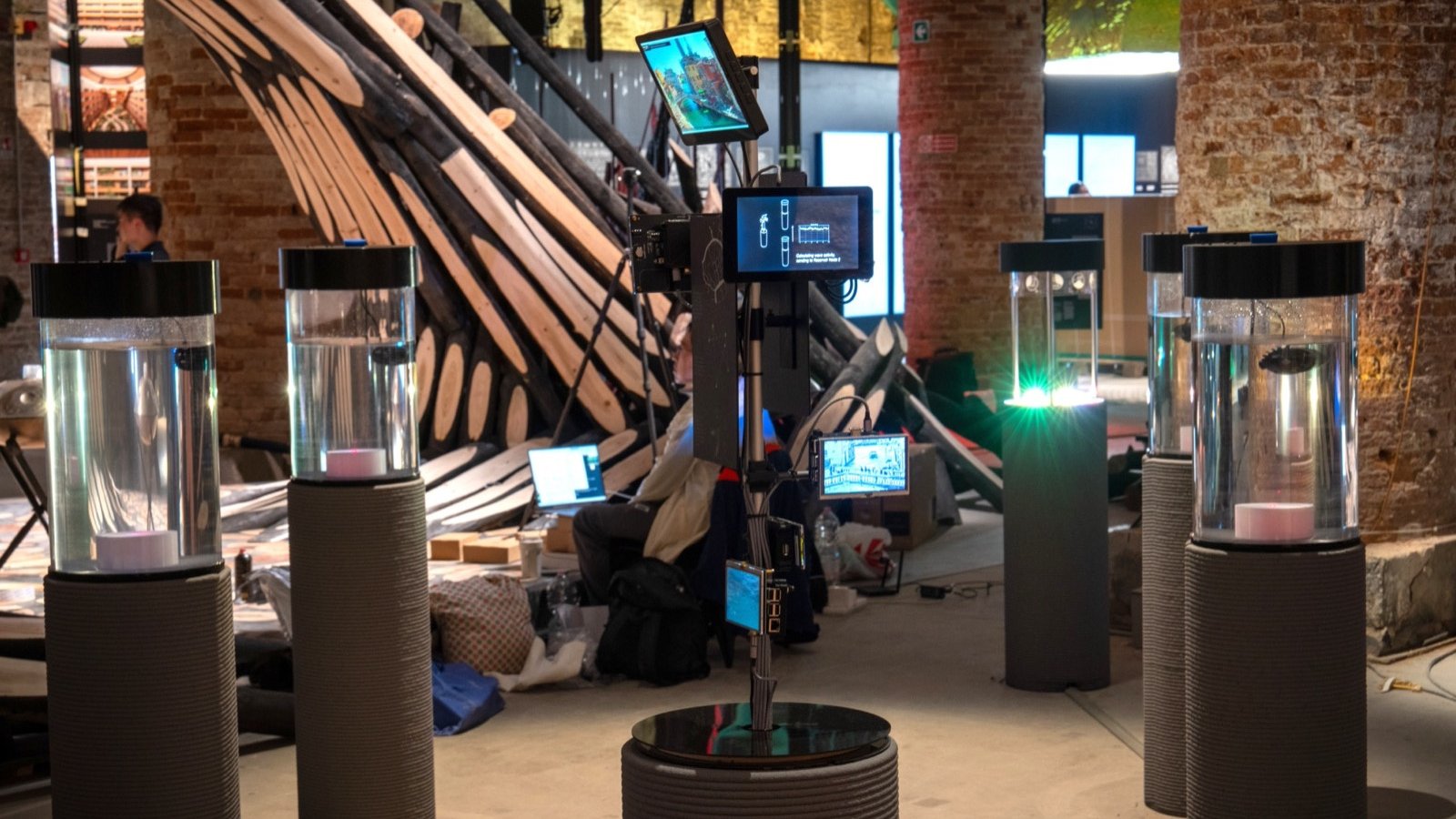 As an enter, the community takes in info from webcams which might be positioned across the canals of Venice. Details about human exercise is extracted and translated into water disturbances, that are created by wave makers in a set of 4 water reservoir columns. The disturbances in a single column affect the disturbances made within the subsequent, and that course of repeats till the ultimate column is reached.
