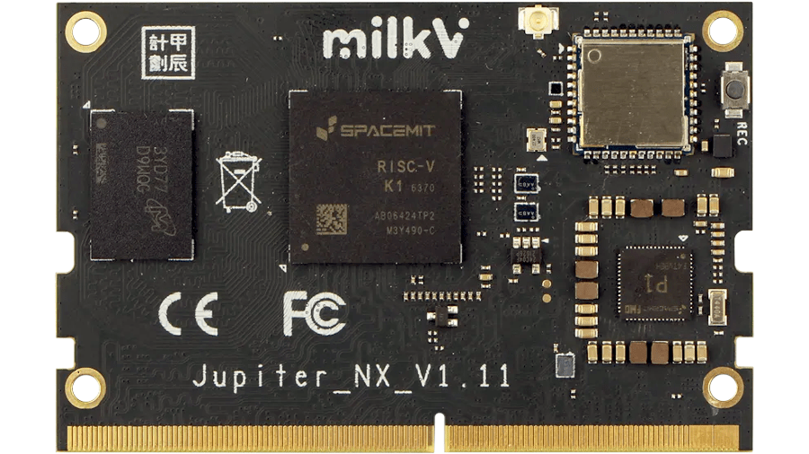 “[The] Milk-V Jupiter NX is an octa-core AI system-on-module that includes [the] SpacemiT M1/K1 SoC [System-on-Chip], onboard Wi-Fi/BT [Bluetooth], and eMMC [storage],” the corporate writes of its newest {hardware} design. “It complies with [RISC-V] RVA22 requirements, helps RVV1.0 [the RISC-V Vector Extensions], and is appropriate with [NVIDIA Jetson] Nano/Xavier NX baseboards, making it the most effective substitute for [the Jetson] Nano.”