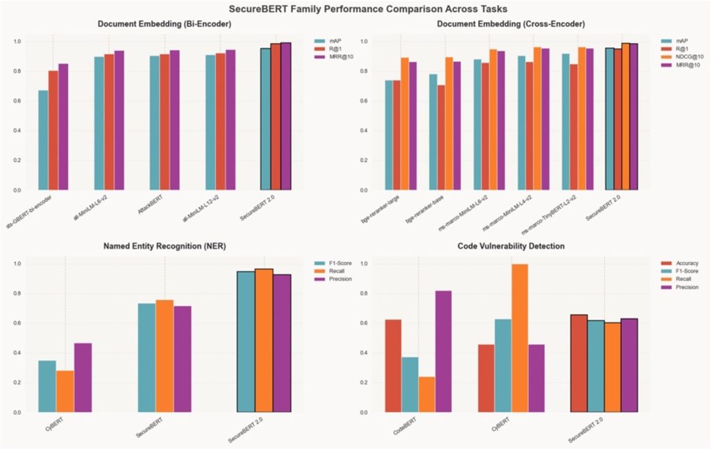 In contrast to generative LLMs that create textual content, SecureBERT 2.0 interprets and constructions info to ship sooner inference, decrease compute prices, and decrease the danger of hallucination. This makes it a trusted basis mannequin for enterprise, protection, and analysis environments the place precision and knowledge integrity matter most.