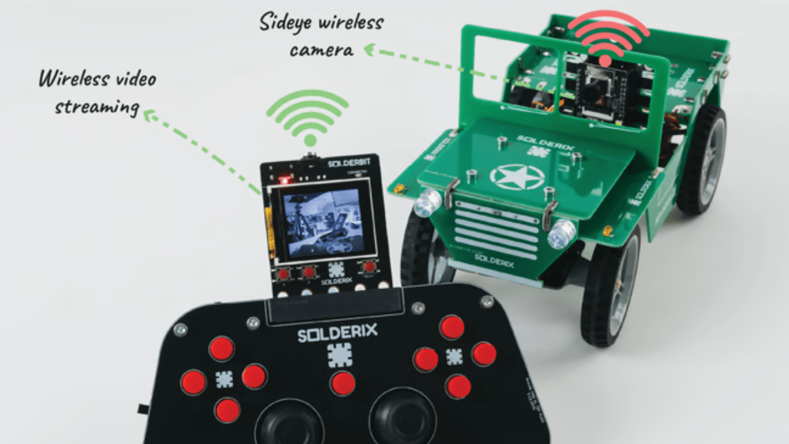The automobile and joystick every use an ESP32 provider board known as a Solderbit – or SolderBit Professional with enhanced options – as its predominant processing unit. Solderbits are arrange through Solderix’s on-line Scratch-like programming interface. The system can also be suitable with BBC micro:bit processor boards, offering one other (presumably already acquainted) management possibility.