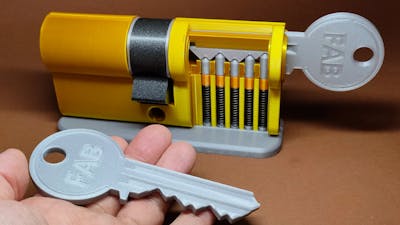 Thorin Oakenshield, a creator I assume to be fairly stout, designed this mannequin to perform precisely like an actual cylinder lock. It’s simply scaled up by 2.4 occasions and has a cutaway on one facet to reveal the springs and pins.