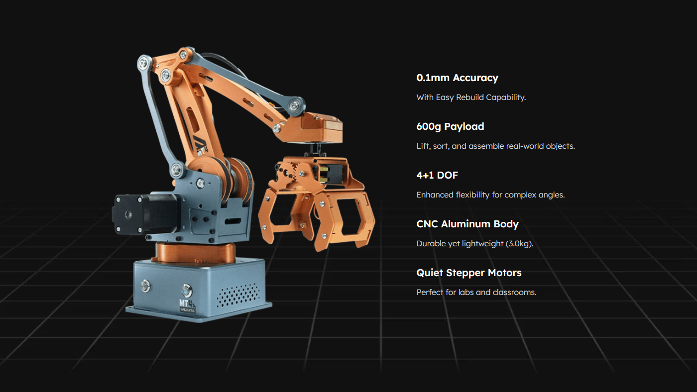 This isn’t WLKATA’s first robotic arm. They already promote the Mirobot, which is a 6-axis arm that prices $1,850. In addition they promote bipedal and quadrupedal robots that value much more. However the MT4 is far more reasonably priced, with particular pre-order pricing as little as $570.