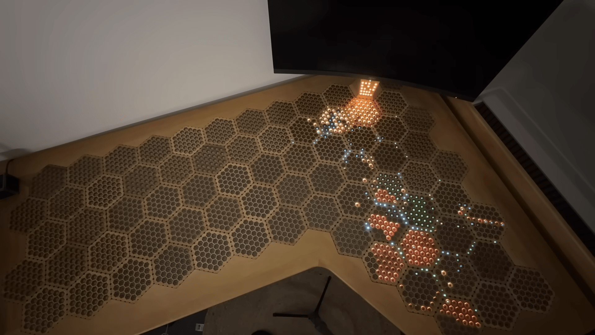 Replicating a honeycomb construction is one factor, however how does one simulate crawling and buzzing bees? The answer right here was intelligent and sensible: LEDs. By illuminating 1000’s of LEDs — 3,745 WS2812B RGB LEDs, to be precise — organized all all through dozens of honeycomb panels, it was doable to provide a visible expertise that does an ideal job of capturing the motion in a beehive.