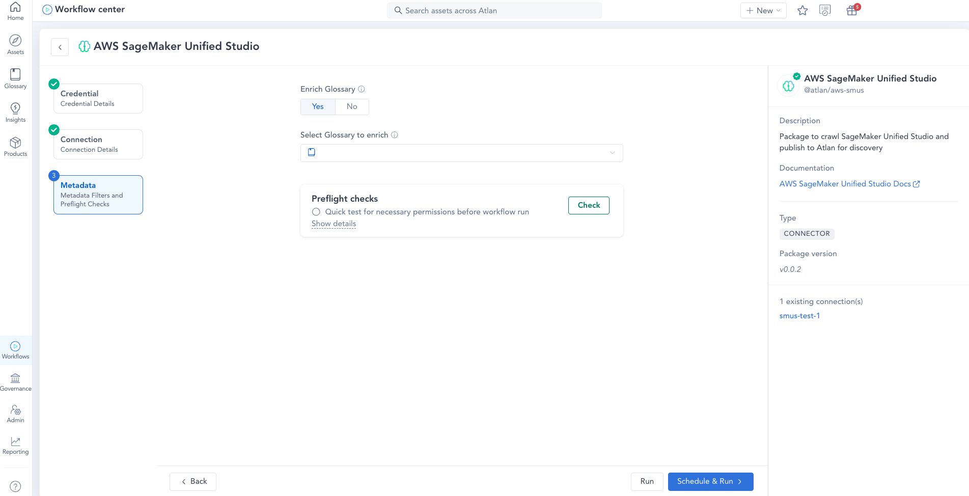 Sequential workflow for the SageMaker Unified Studio Atlan integration