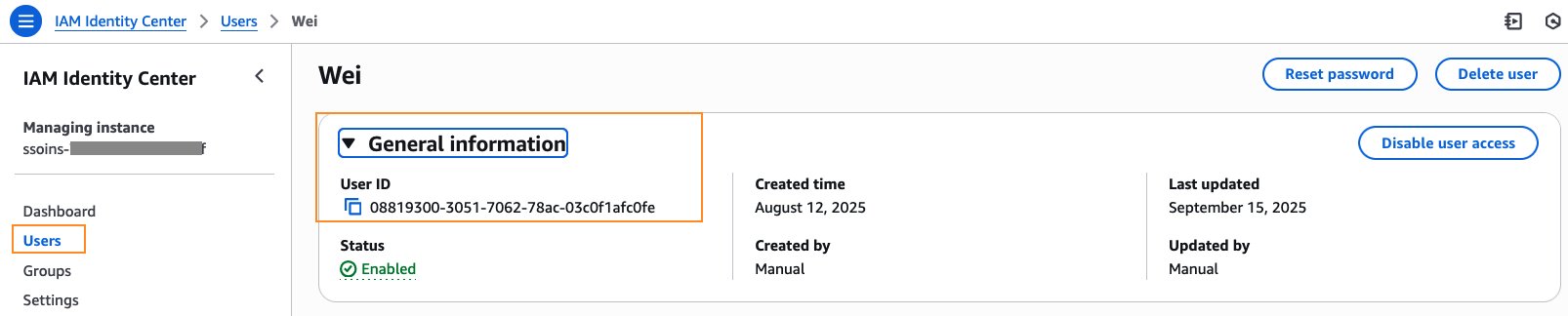 The consumer ID for Wei is out there within the IAM Identification Heart console underneath Common data.