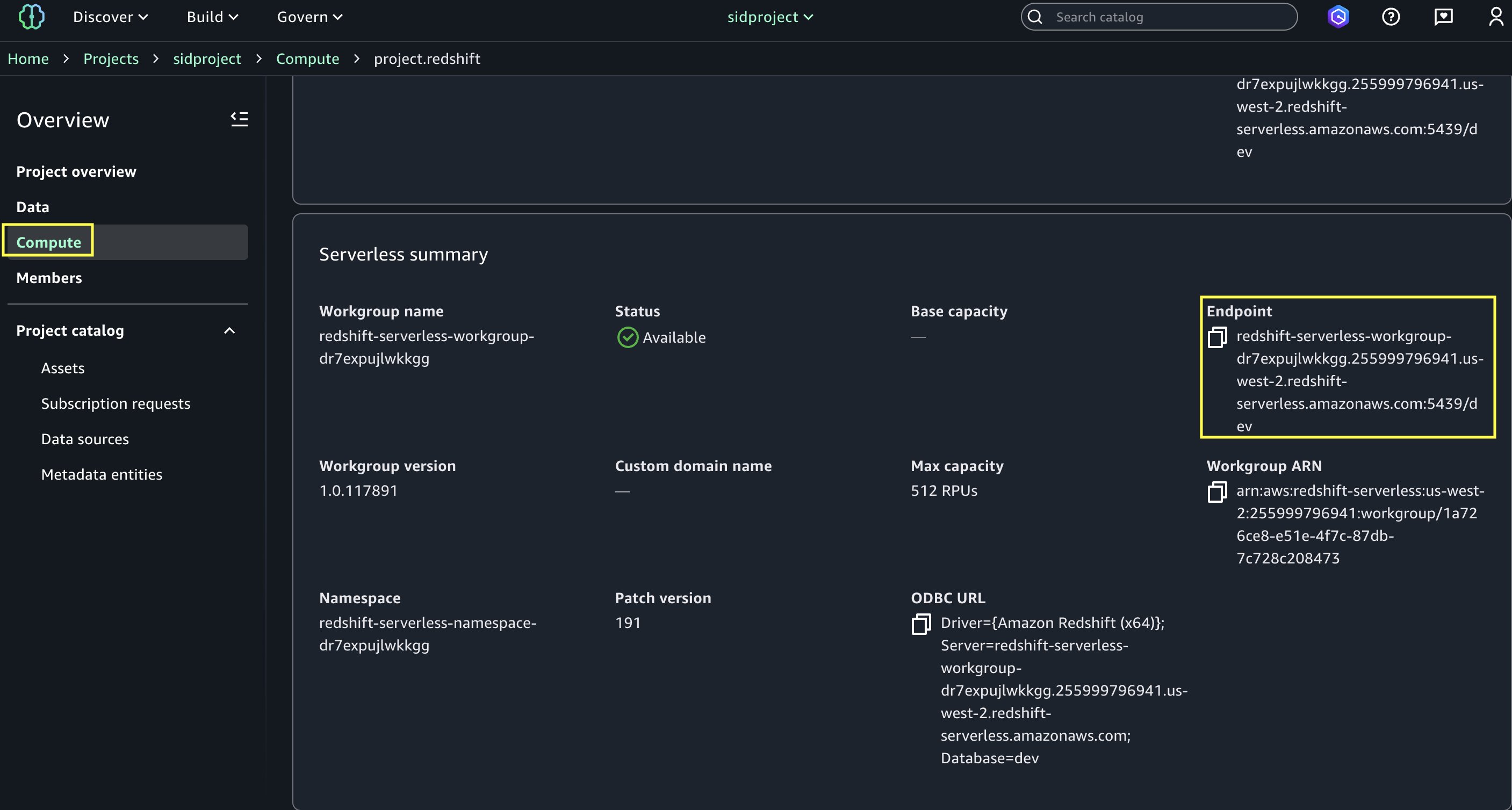 9. Choose the Amazon Redshift supply (RedshiftServerless-default-redshift-datasource).