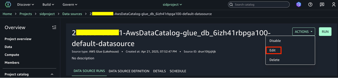 13. Replace the info supply and select Run to create an asset referred to as employeewithabsent in SageMaker Catalog.